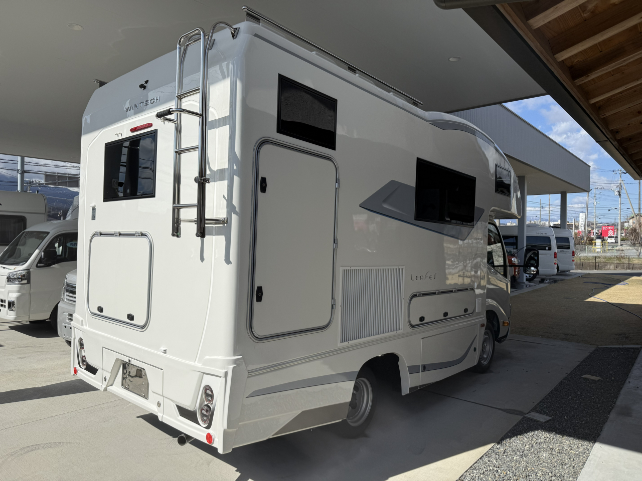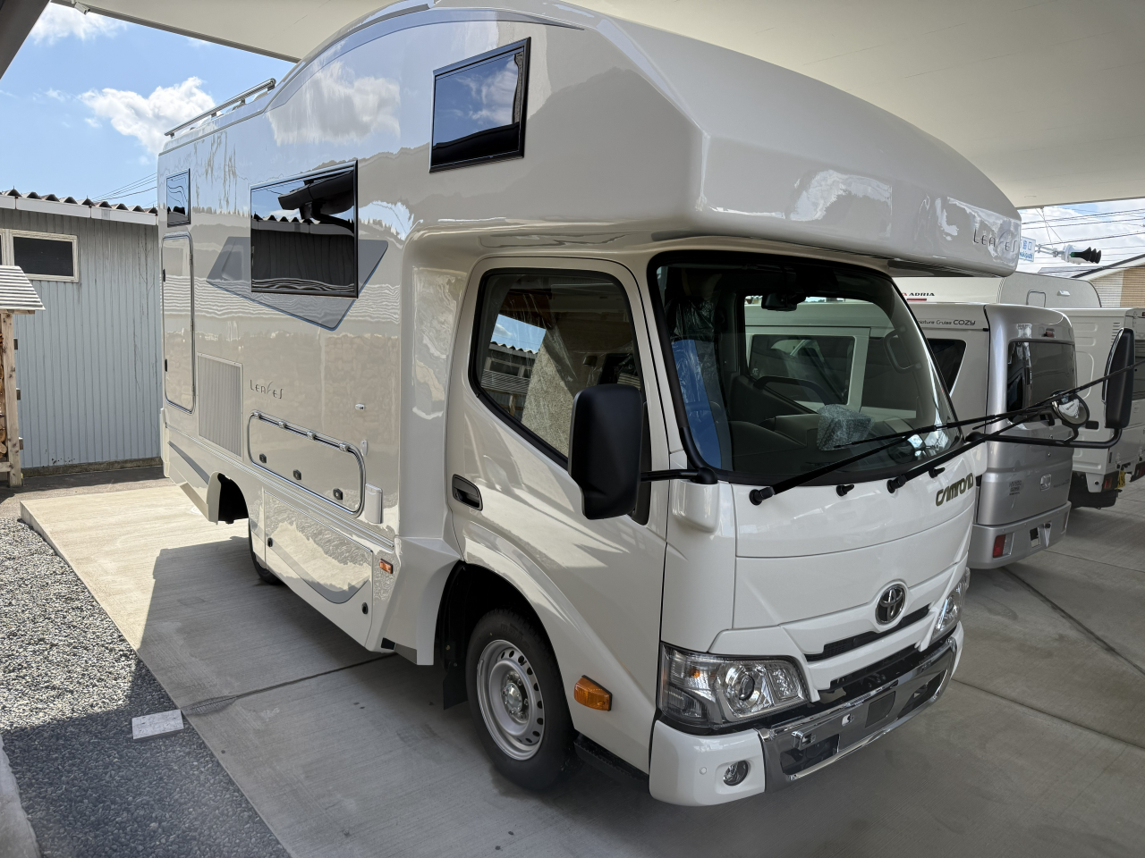 装着済みオプ | 運転席・助手席電動格納2面鏡ミラー79,420円・エントランスステップ39,600円・85L冷蔵庫210,100円・FFヒータースイッチ変更34,650円・電子レンジ49,500円・路肩灯LED35,200円・クラリオン製7インチバックモニター44,550円・給水用排水バルブ15,400円・インスペクションハッチ追加16,500円・メインサブ切替スイッチ&HDMIケーブル51,700円・サイドカウンター(カップホルダー)33,000円 |