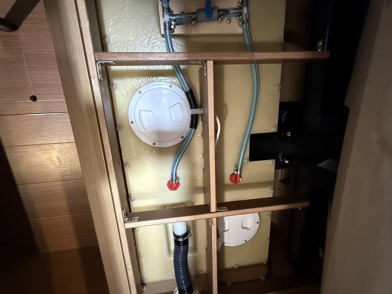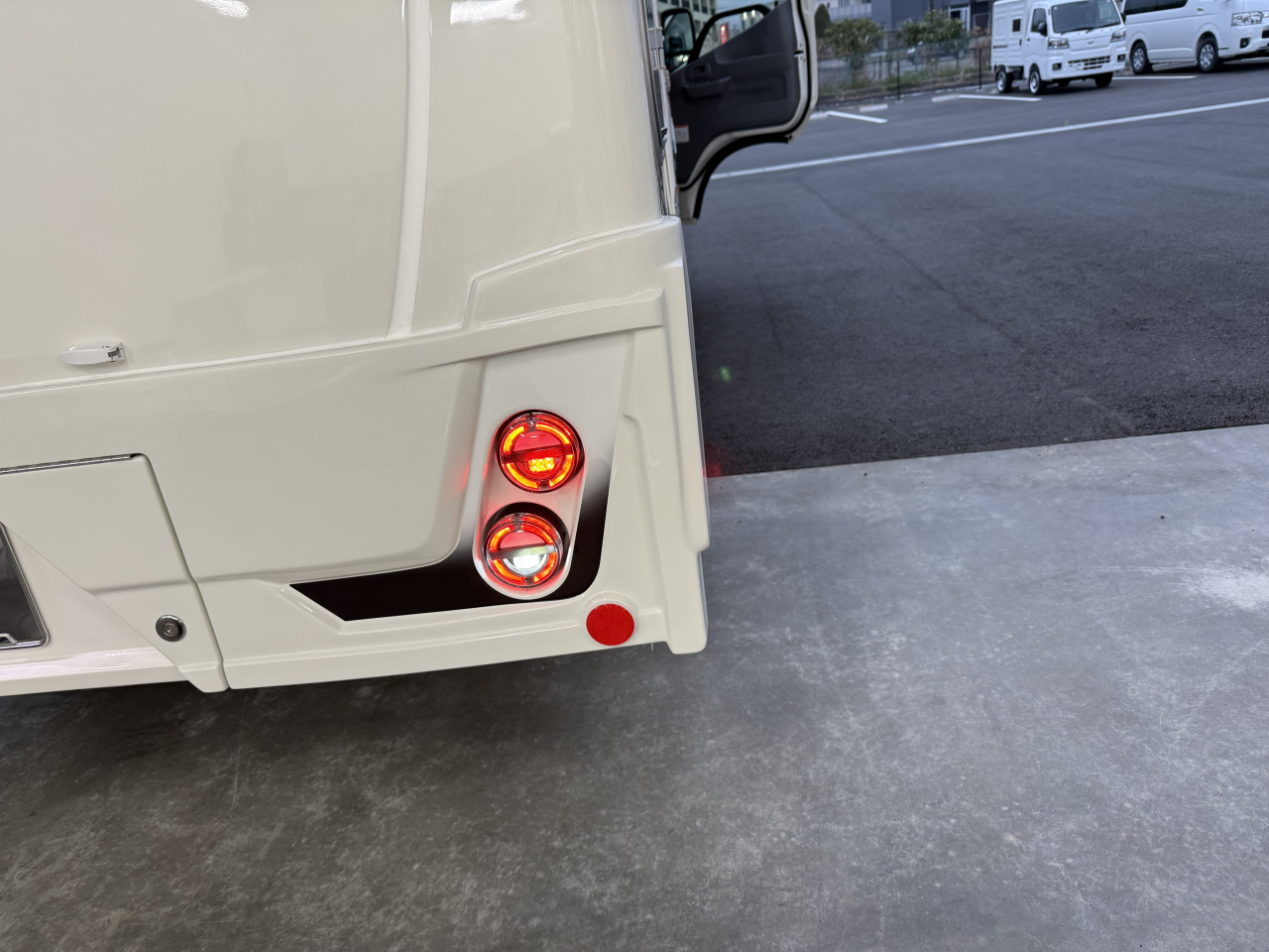 装着済みオプ | 運転席・助手席電動格納2面鏡ミラー79,420円・エントランスステップ39,600円・85L冷蔵庫210,100円・FFヒータースイッチ変更34,650円・電子レンジ49,500円・路肩灯LED35,200円・クラリオン製7インチバックモニター44,550円・給水用排水バルブ15,400円・インスペクションハッチ追加16,500円・メインサブ切替スイッチ&HDMIケーブル51,700円・サイドカウンター(カップホルダー)33,000円 |