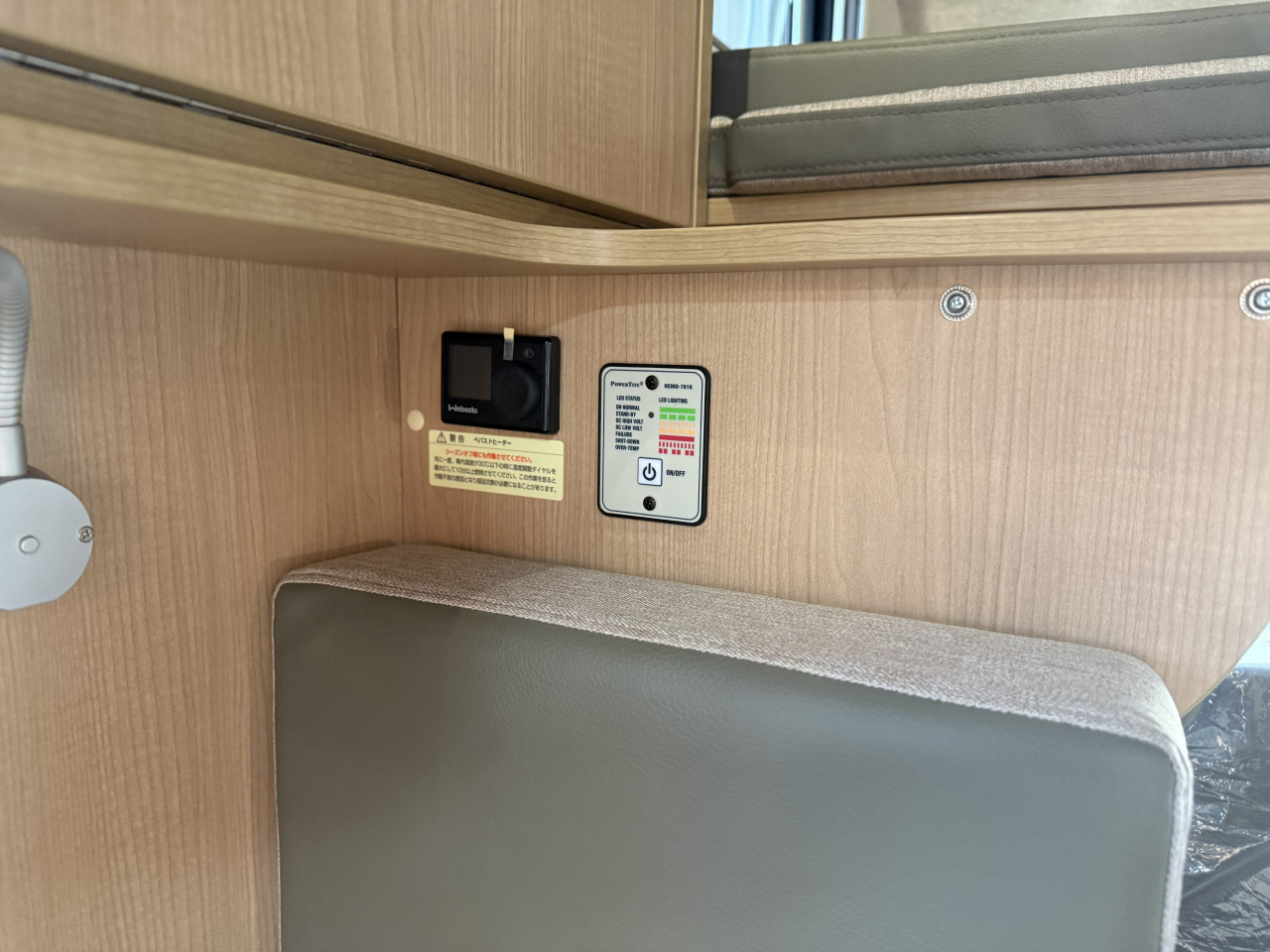 装着済みオプ | 運転席・助手席電動格納2面鏡ミラー79,420円・エントランスステップ39,600円・85L冷蔵庫210,100円・FFヒータースイッチ変更34,650円・電子レンジ49,500円・路肩灯LED35,200円・クラリオン製7インチバックモニター44,550円・給水用排水バルブ15,400円・インスペクションハッチ追加16,500円・メインサブ切替スイッチ&HDMIケーブル51,700円・サイドカウンター(カップホルダー)33,000円 |